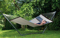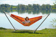 Op zoek naar hangplezier voor velen? De Sumo Grande standaard is speciaal gebouwd voor onze extra grote hangmatten. De standaard is in lengte verstelbaar en eenvoudig te monteren zonder gereedschap. De lengte is verstelbaar van 330 tot 360 centimeter. Het frame is gemaakt van metaal en heeft een speciale RockStone coating. Deze coating biedt een betere bescherming tegen krassen dan een normale poedercoating. Hierdoor kan je dus langer van de standaard genieten. De maximale draagkracht van de Sumo Grande is 200 kg en wat geschikt is voor tweepersoons hangmatten.