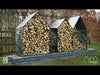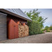 De houtopslag bestaat uit drie huisjes met een totale breedte van 281 cm: twee open huisjes en één gesloten module met deuren en een dichte achterwand. Dit biedt niet alleen ruimte voor haardhout, maar maakt het ook mogelijk om bijvoorbeeld een afvalcontainer of tuingereedschap netjes op te bergen.