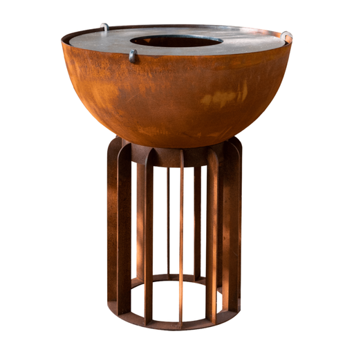 OutrEen Plancha Bowl bestaat uit drie delen: een sokkel met daarop een vuurschaal, afgewerkt met een bakplaat bovenaan. In de vuurschaal ligt er een as...