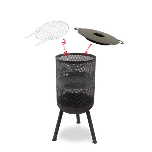 BonFeuDe BonFeu BonVes is een stijlvolle vuurkorf op de kenmerkende hoge poten van BonFeu. De geperforeerde korf, die doet denken aan een oude wasmachine...