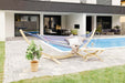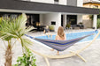 De Tonga hangmat is gemaakt van EllTex-materiaal, dat weerbestendig, UV-bestendig en duurzaam is, maar zacht als katoen aanvoelt. Met 55% gerecycled katoen en talrijke dikke ophangkoorden biedt de hangmat een gelijkmatige gewichtsverdeling en een heerlijk comfortabel gevoel. Het Kronos frame, zorgvuldig handgemaakt in Polen, is gemaakt van weerbestendig vurenhout uit duurzame Europese bossen. Dankzij de hoogwaardige verlijming en dompelbadbehandeling is het frame stabiel, veilig en perfect voor langdurig gebruik.