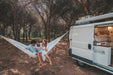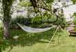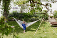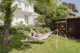 De Carioca hangmat, handgemaakt in Brazilië, combineert traditioneel vakmanschap met ultiem comfort. Geschikt voor drie personen, gemaakt van extra zachte, dicht geweven stof met minstens 85% gerecycled katoen. De jacquardweeftechniek en vele ophangkoorden zorgen voor een gewichtloos gevoel, terwijl het handgeweven katoenen lint en de dubbel 5-voudig genaaide zeilringen optimale stabiliteit bieden. Met een stevige 450 g/m² stof en een draagvermogen tot 200 kg is deze hangmat duurzaam en comfortabel.