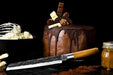 Het Forged Olive broodmes is een veelzijdig en stijlvol mes, perfect voor het snijden van harde broodsoorten, quiches en grotere groenten of fruit zoals meloen en pompoen. Het elegante ontwerp met olijfhouten handvat en hamerslagafwerking maakt het niet alleen functioneel maar ook een eyecatcher in de keuken. Elk mes is met de hand vervaardigd en geleverd in een luxe houten kistje, wat het ook een ideaal cadeau maakt voor kookliefhebbers.