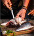 Het Forged Olive visfileermes is een must-have voor de gepassioneerde hobbykok die van verse vis houdt. Dit handgemaakte mes heeft een flexibel lemmet van hoogwaardig Japans staal, waardoor je moeiteloos vis kunt fileren. Het olijfhouten handvat biedt niet alleen een prachtige uitstraling, maar ook een comfortabele grip. Het mes wordt geleverd in een luxe houten kist, waardoor het ook een ideaal cadeau is. Door de flexibiliteit van het lemmet is het perfect voor nauwkeurig fileren, waarmee je een professionele uitstraling aan je gerechten geeft.