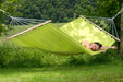 Wedden dat je er met de Miami lekker bij ligt? Dit is een lange hangmat met bar in trendy kleurtjes. De bar van deze hangmat is extra lang, waardoor je nóg comfortabeler ligt. De handige spreidstok houdt dan weer het liggedeelte open en zorgt voor meer stabiliteit tijdens het liggen. De hangmat is gemaakt van gerecyclede materialen en bestaat voor 80% uit katoen en 20% uit polyester. Door het grote liggedeelte en de hoge draagkracht kun je er makkelijk met twee personen in relaxen. Welcome to Miami!
