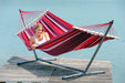 De SummerSet is dé perfecte, zomerse loungeset, voor zowel je tuin als op vakantie. De metalen Sumo standaard is weerbestendig en heeft een Rockstone coating die perfect past bij de Amazonas hangmat. Het geheel is bovendien uiterst makkelijk te monteren. De hangmat is gemaakt van EllTex, een combinatie van katoen en polyester, en bovendien lekker zacht en makkelijk te drogen. Doordat EllTex bijna niet vervaagt en ook nog eens erg sterk en weerbestendig is, is de volledige set uitermate duurzaam. De handige spreidstok houdt dan weer het liggedeelte open en zorgt voor meer stabiliteit tijdens het liggen. In de SummerSet geraken is heel makkelijk, maar waarom zou je er ooit nog uit willen?