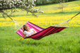 Niet de grootste hangmat in ons gamma, wel een van de meest comfortabele. Dankzij de langere bevestigingskabels en extra brede doek kan je nog beter relaxen. De hangmat is gemaakt van EllTex, een combinatie van katoen en polyester, en bovendien lekker zacht en makkelijk te drogen. Doordat EllTex bijna niet vervaagt en ook nog eens erg sterk en weerbestendig is, zijn de Tonga hangmatten uitermate duurzaam. De handige spreidstok houdt dan weer het liggedeelte open en zorgt voor meer stabiliteit tijdens het liggen. Nog meer ontspannen kan haast niet.